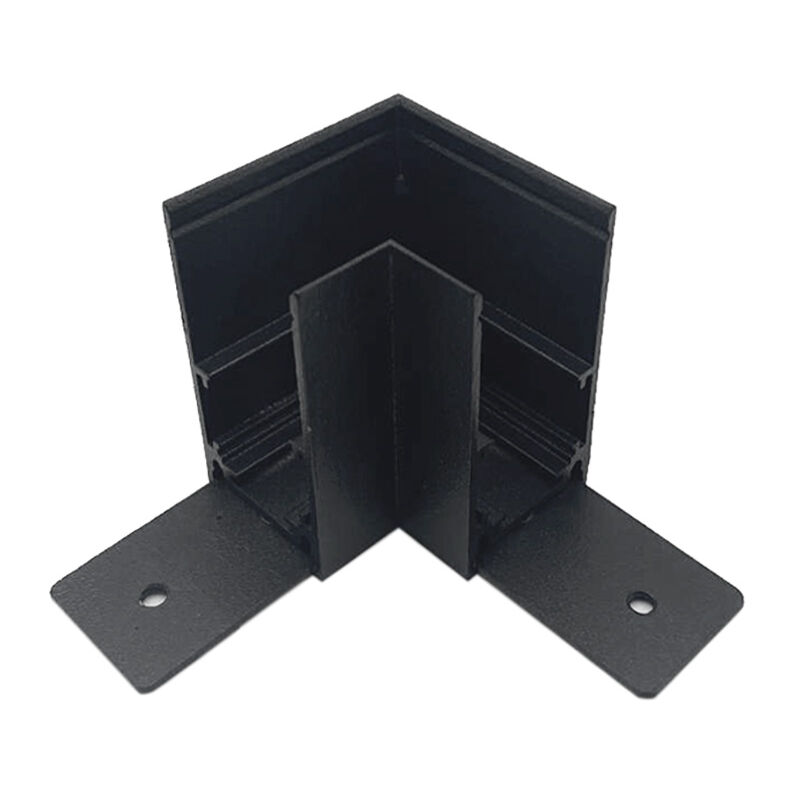 Connettore Angolare 90 Orizzontale per Binari magnetici 48V a sospensione Silamp Connettore Angolare 90° Orizzontale per Binari magnetici 48V a sospensione è stata realizzata per creare l'angolo tra due Binari magnetici a sospensione su un piano. Si presenta senza sporgenze, quindi totalmente a scomparsa. Il connettore non è elettrificato, per portare la tensione di corrente 48V da un binario all'altro, è necessario collegare con il connettore CON-48V-1. Caratteristiche tecniche: Colore: nero Materiale: alluminio resistente Certificato CE Grado di protezione: IP20 Dimensione:72 x 72 mm Altezza: 50 mm Contenuto della confezione: 1 Connettore angolare orizzontale 2 Vite