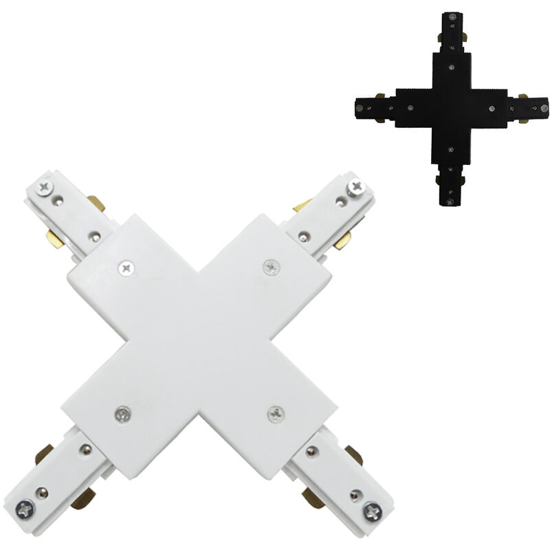 Connettore a X per binario Monofase colore Bianco/Nero A11-MONO-X Il Connettore BIANCO e NERO Monofase angolare 4 permette di unire a X fino a quattro binari MONOFASE, per quattro differenti direzioni (su, giù, destra e sinistra). Suddetto connettore è da associare ai nostri binari MONOFASE. I nostri Connettori Monofase sono compatibili con tutta la nostra gamma di Binari elettrificati a Led MONOFASE, non garantiamo lo stesso per prodotti di altre marche. Il prodotto è conforme alle normative europee CE. Caratteristiche: Colore: BIANCO E NERO Monofase Certificato CE IP20 Contenuto della confezione: 1 connettore a X monofase