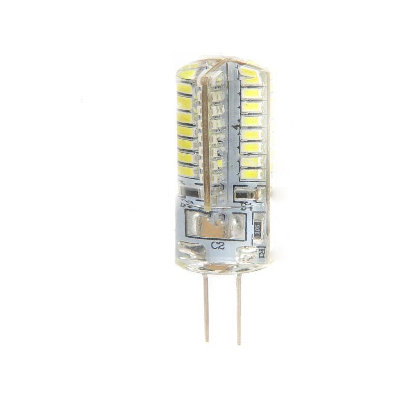 Lampadina g4 LED 3w 12v con 48led super potenti con attacco classica.Risparmiate molta corrente elettrica perchè consumano solo 3w ogni lampadina facendovi la stessa luce di prima, fate conto che ogni lampadario ci vanno molte lampadine da 20w.per sostituire le lampadine g4 classiche alogene da 10w e 20wCaratteristiche tecniche:Guardare le foto per sapere le dimensioniLampadine led G4 48ledConsumo: 3w (rendimento circa 30watt, paragonabile a un'alogena g4 classica)Tensione di Funzionamento: 12V DC corrente continua per led (non funziona con corrente alternata AC)Tipo di attacco: G4Luce emessa: 200lumensAngolazione luce: 360°Distanza tra i piedini: 4mmDiametro lampadina 12mmClasse di efficienza energetica: F (Nuova Normativa del 2021) Contenuto della confezione:1 lampadina g4 led