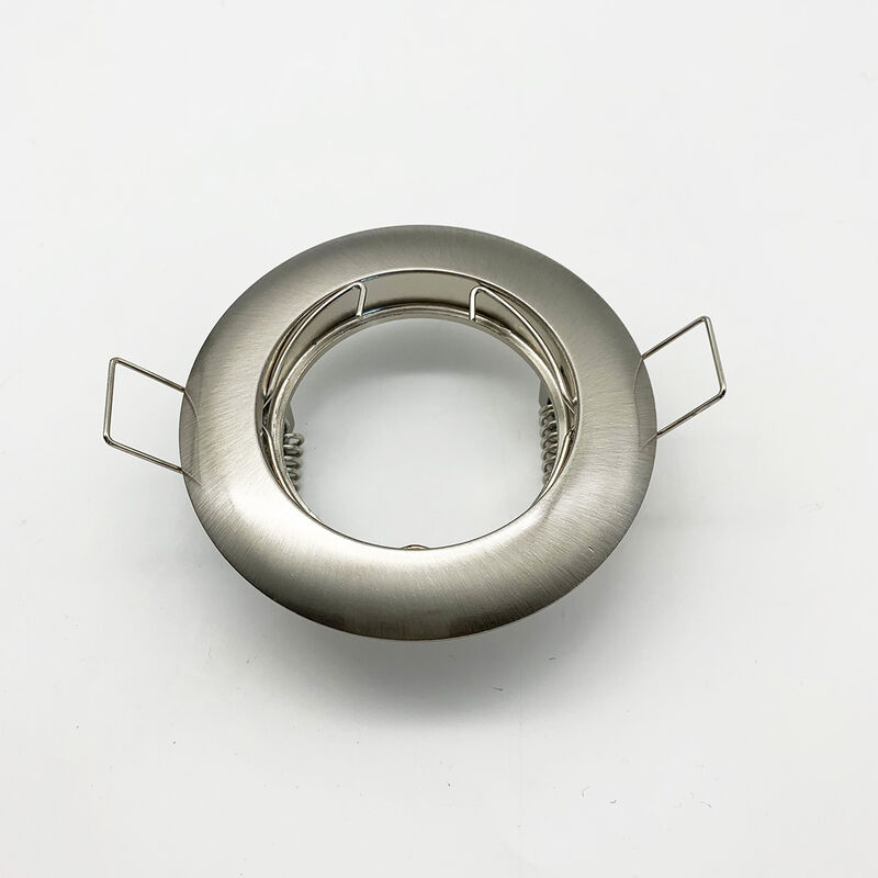 Portafaretto Ghiera ad incasso Fisso per faretti gu10 Spot metallo spazzolato Faretto ad incasso in metallo FISSO ghiera controsoffitto, si può montare le lampadine a led. Caratteristiche tecniche: Marchio: Silamp Colore: metalizzato spazzolato Materiale: metallo verniciato;