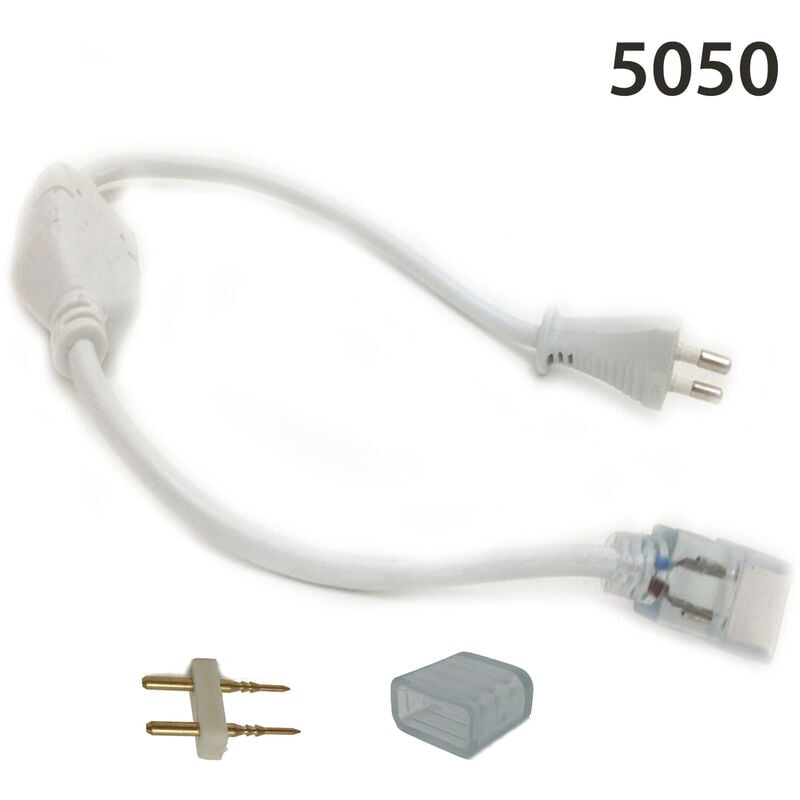 Kit completo per strisce led SILAMP 220v 5050Compatibile conSTRIP-LED-220V SMD5050 La confezione contiene:1 Cavo con presa per striscia led 220V1 Connettore 220v1 Tappo di chiusura(striscia non inclusa)