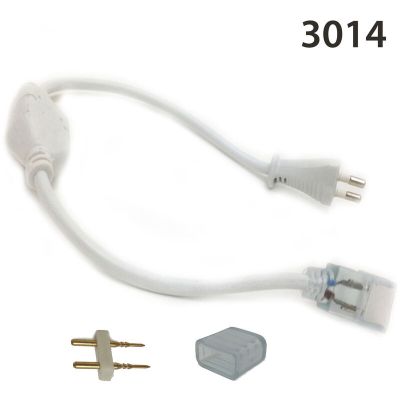 Cavo con presa connettore e tappo Per striscia Led 3014 220v Accessorio Striscia Kit completo per strisce led SILAMP 220v 3014 Compatibile con STRIP-LED-220V SMD3014 La confezione contiene: 1 Cavo con presa per striscia led 220V 1 Connettore 220v 1 Tappo di chiusura (striscia non inclusa)