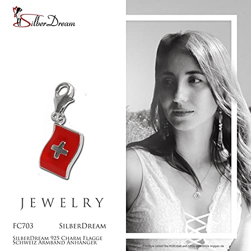 SilberDream, Argento Sterling 925, Bandiera Svizzera per bracciali, collane e orecchini FC703