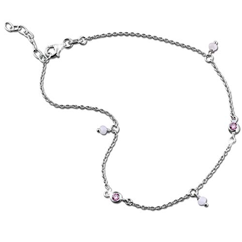 SilberDream Cavigliera da donna con perle e zirconi, 25 cm, in argento 925 SDF5105A, 25 centimeters, Argento sterling, zirconi, perle acriliche.