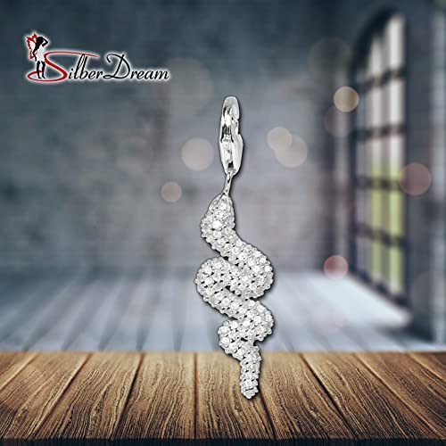 SilberDream Ciondolo a forma di serpente bianco, in vero argento 925, con zirconi, D2FC221W, un bel regalo per Natale, compleanno, San Valentino per la donna, Argento sterling, Zirconia cubica
