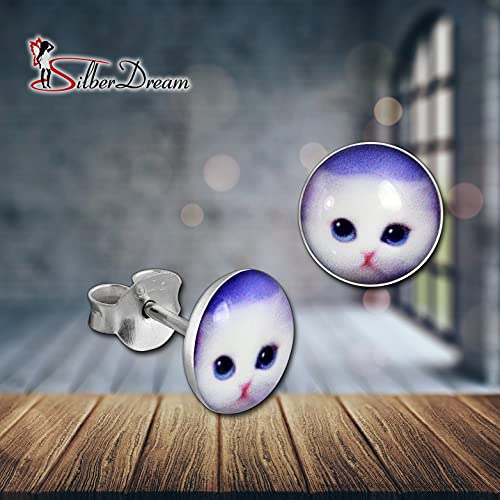 SilberDream D3SDO8513X - Orecchini da donna in argento, 8 mm e 925 Sterling argento, colore: Gatto: bianco, viola., cod. D3SDO85131