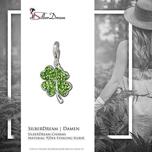 SilberDream GSC205 - Ciondolo in argento 925 con elementi Swarovski a quadrifoglio, per collane/braccialetti/orecchini, colore verde