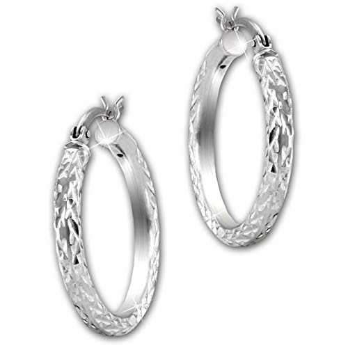 SilberDream Orecchini a cerchio in argento 925 con taglio a diamante SDO67342, Argento sterling