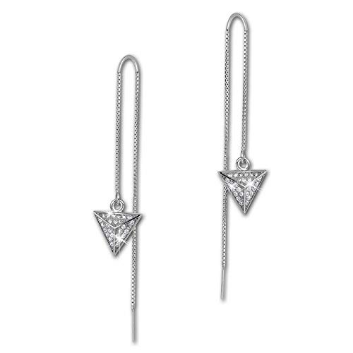 SilberDream, orecchini da donna, con catenina passante, con brillantini a forma di triangolo, con zirconi bianchi, argento Sterling 925, GSO441W