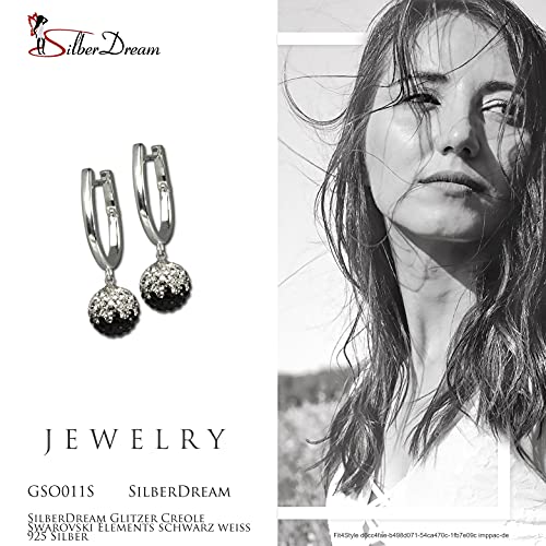 SilberDream poposh orecchini a cerchio in bianco e Nero cristalli Swarovski Elements 925 in argento Sterling GSO011S