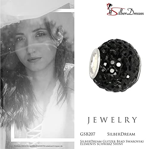 SilberDream poposh Bead Swarovski Cristalli nero lucido SilberDream argento perline per braccialetti GSB207