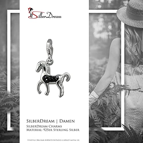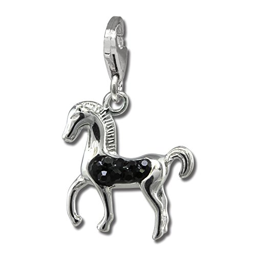 SilberDream poposh takasugi 3D cavallo nero zirconi argento 925 Ciondolo a forma di cristallo per collane e braccialetti GSC570S