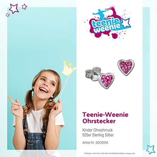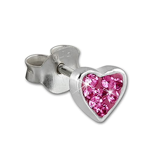 SilberDream SDO009A - Orecchini per bambini con zirconi rosa, forma a cuore, in argento Sterling 925