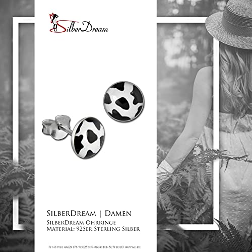 SilberDream SDO8512S - Orecchini da donna in argento 925, 8 mm, colore: Bianco mucca nero