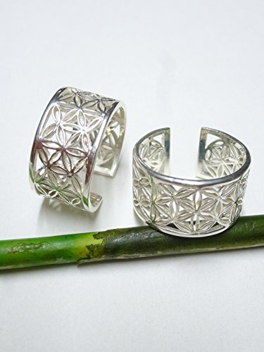 Anello in argento, anello a fascia aperto, motivo fiore della vita,