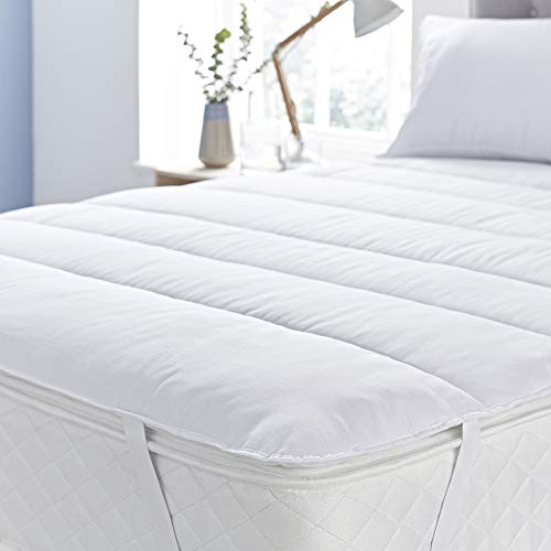 Rimani comodamente al fresco tutta l'estate grazie a questo coprimaterasso traspirante della collezione Silentnight. Le fibre traspiranti Cirrus consentono di evacuare l'umidità e il calore al fine di mantenere freschi e rilassati. Fodera in 100% microfibra traspirante. Imbottitura in 100% fibra cava. Lavabile in lavatrice. Ipoallergenico. Si prega di notare: L'imballaggio del prodotto potrebbe essere leggermente diverso dalla foto.