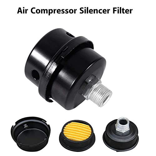 1/2" Silenziatore per Filtro Aria, Nero in Metallo Filetto Maschio Filtro Silenziatore Reducing Noise Compressore Aria a Filetto