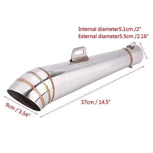 △[Wide application]Terminale scarico moto terminali di scarico è adatto per la maggior parte delle moto/veicoli fuoristrada/scooter con un diametro di 51 mm/2 pollici. Lunghezza: 370 mm/14,6 pollici. Diametro interno: 51 mm/2 pollici. per terminale scarico moto adatto per silenziatore moto