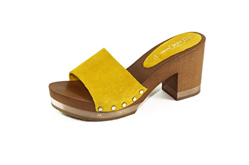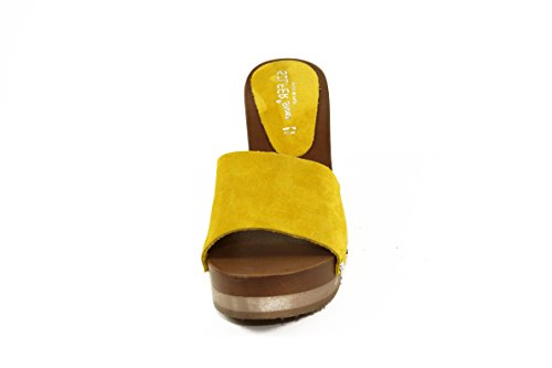 Silfer Shoes - Zoccolo in Vero Legno e Pelle di camoscio, Colore Giallo (41)