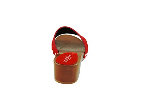 Silfer Shoes - Zoccolo in Vero Legno e Pelle di camoscio, Colore Rosso (38 EU)