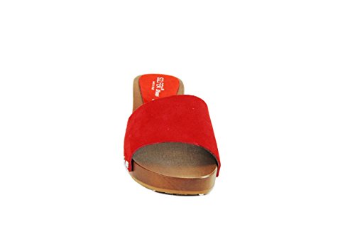 Silfer Shoes - Zoccolo in Vero Legno e Pelle di camoscio, Colore Rosso (37 EU)