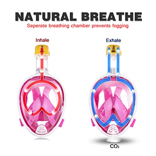 VISIBILITÀ 180 GRADI - La nostra maschera integrale da snorkeling a 186 gradi offre una visibilità superiore rispetto a una normale maschera subacquea e ti dà una visuale completa del mondo sottomarino. Inoltre, a differenza delle lenti curve che creano pblemi alla vista e nausea, la nostra maschera da snorkeling a lenti piatte ti permette di avere una visione naturale del mondo subacqueo.