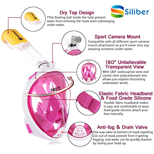 Siliber Nuova Maschera da Snorkeling 180° Integrale Easybreath con Design Anti-Appannamento&Contro l'entrata d'Acqua per Adulti e Bambini.Cover per Smartphone Resistente all'Acqua&Zaino