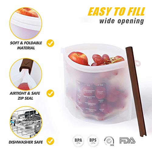 Silicone Alimentare Storage Bag,Sacchetti riutilizzabili per alimenti, 1 litro, in silicone, versatili, per conservare frutta, verdura, carne, senza BPA, igienici e a tenuta stagna, set di 4