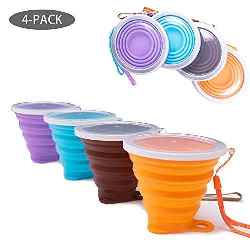 LYY Silicone Bicchiere Pieghevole con coperchio in plastica, tazza da viaggio pieghevole portatile riutilizzabile per picnic, campeggio ed escursioni all'aria aperta (270ml,4-A)