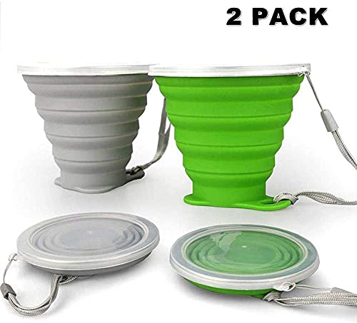 LYY Silicone Bicchiere Pieghevole con coperchio in plastica, tazza da viaggio pieghevole portatile riutilizzabile per picnic, campeggio ed escursioni all'aria aperta (270ml,2Pcs)