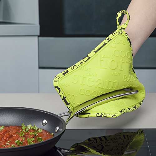 Zeal Silicone Mat Caldo e presina Script, Cotone, Verde Lime, 34 x 28 x 1.5 cm