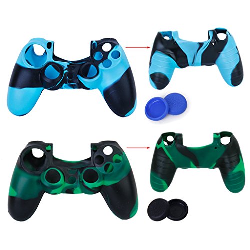 2x Silicone Skin Case Cover + Joystick Thumbstick Tappi Set per Sony PS4 Controller