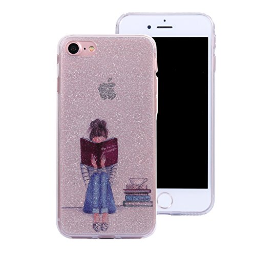 Silicone Custodia per iPhone 6S,Modbido Cover per iPhone 6,Leeook Bella Cristallo Bling Strass Lusso Ragazza di lettura Modello Brillantini Flessible Bumper Gel TPU Gomma Sottile Silicone Protettiva Anti Scivolo Morbido Copertura Housing Skin Cover per iPhone 6 / 6S 4.7 pollice + 1 x Nero Stilo-Ragazza di lettura