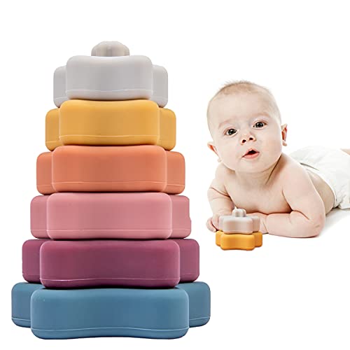 Let's make Silicone Dentizione Giocattoli Impilabili Imparare Gioco Montessori per Baby Soft Stacker Blocchi Massaggiagengive (Forma a Stella)