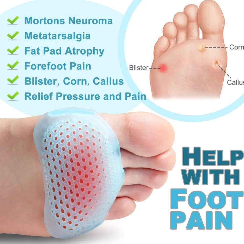 Y1UF 1 Pair Blue Silicone Honeycomb Forefoot Pads Pain Relief Reusable Foot Cushion