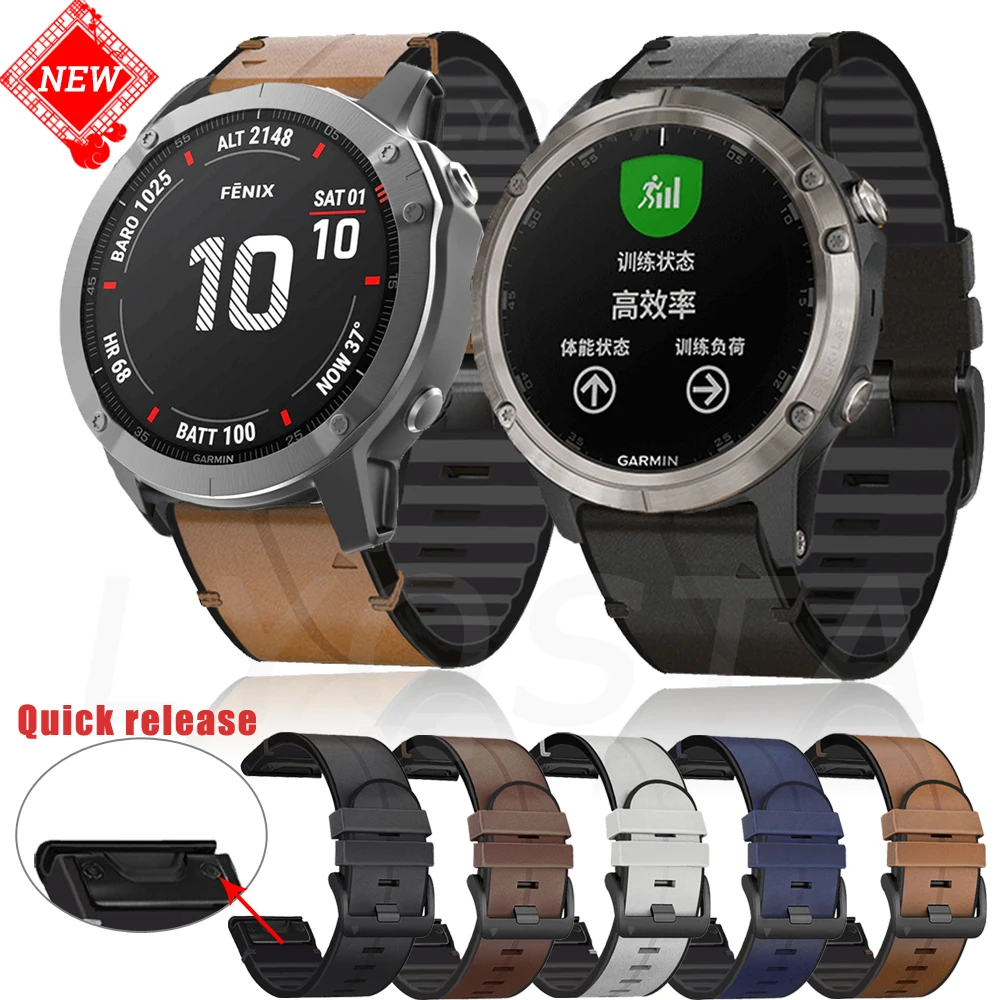 22 26MM Silicone+Leather Quick Release Watchband Strap For Garmin Fenix 6 6X Pro 5 5X Plus 935 Watch Easy fit Wrist Band Pемешок