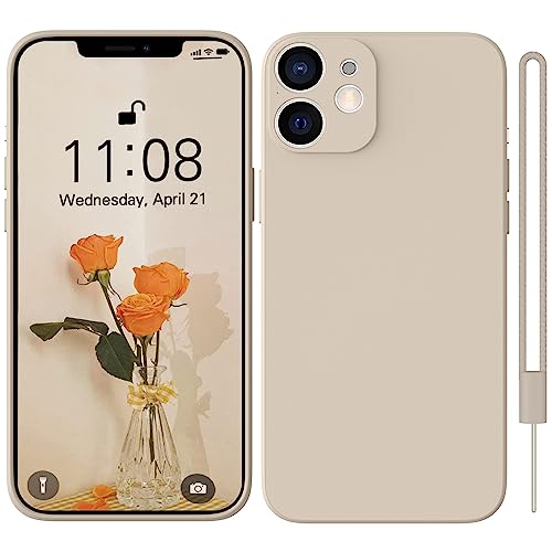 HGH Silicone Liquido Custodia Cover Compatibile con iPhone 12 Case con 1 cordino, Antigraffio, Ultra Sottile, Fodera interna in Morbida Microfibra per iPhone 12 da 6,1" - Cachi
