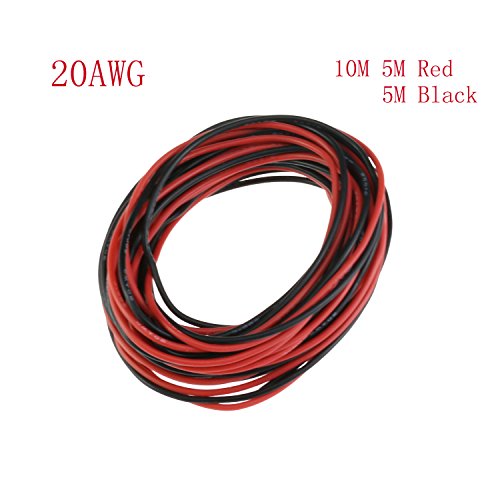 YCNK Filo in silicone da 0,81mm, matassa da 10m, morbido e flessibile, cavo elettrico in rame resistente alle alte temperature (5m nero e 5m rosso)