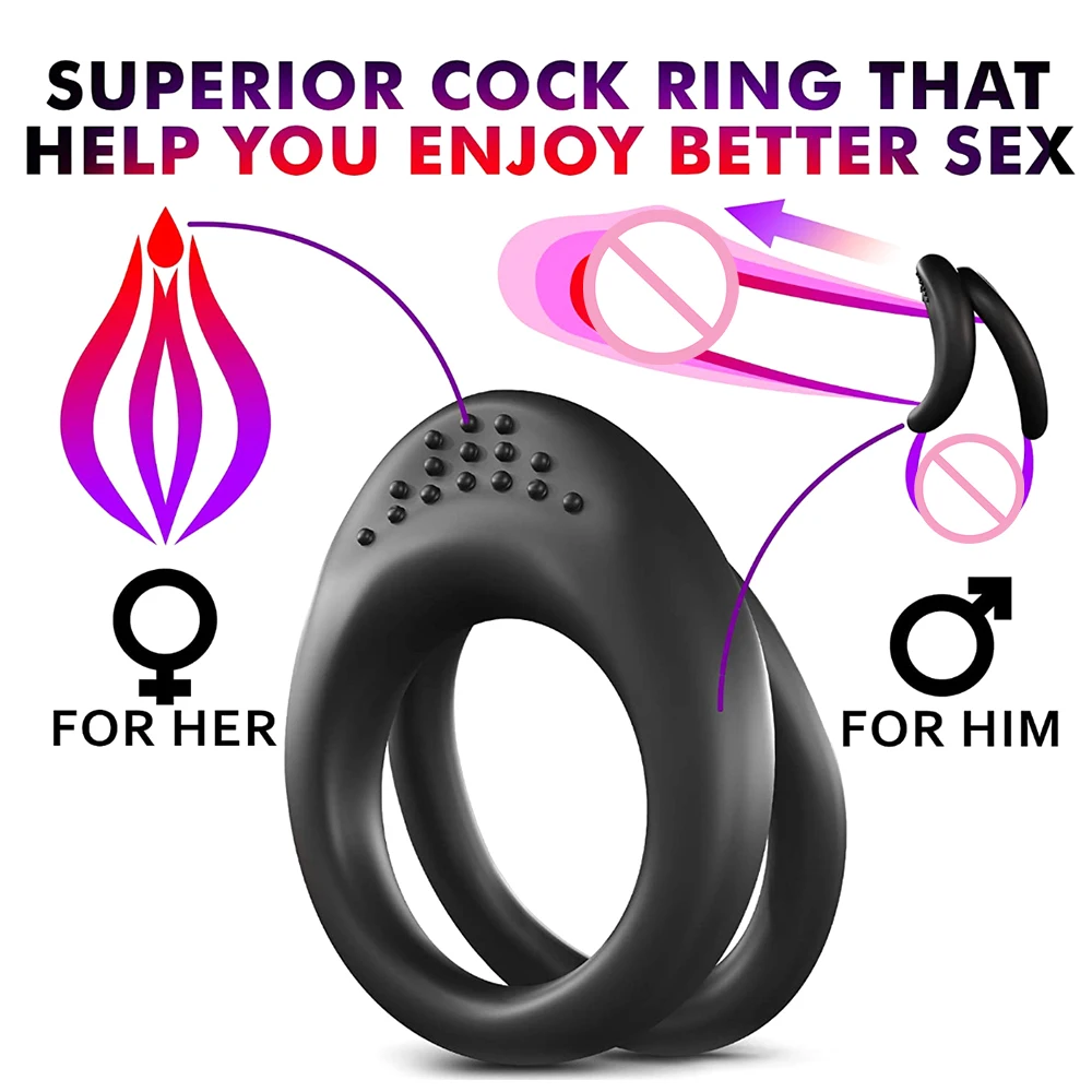 Silicone Dual Penisring,Stretchy Longer Harder Stronger Erection Cockring Erection Enhancing SexToy for Man or Couples Play