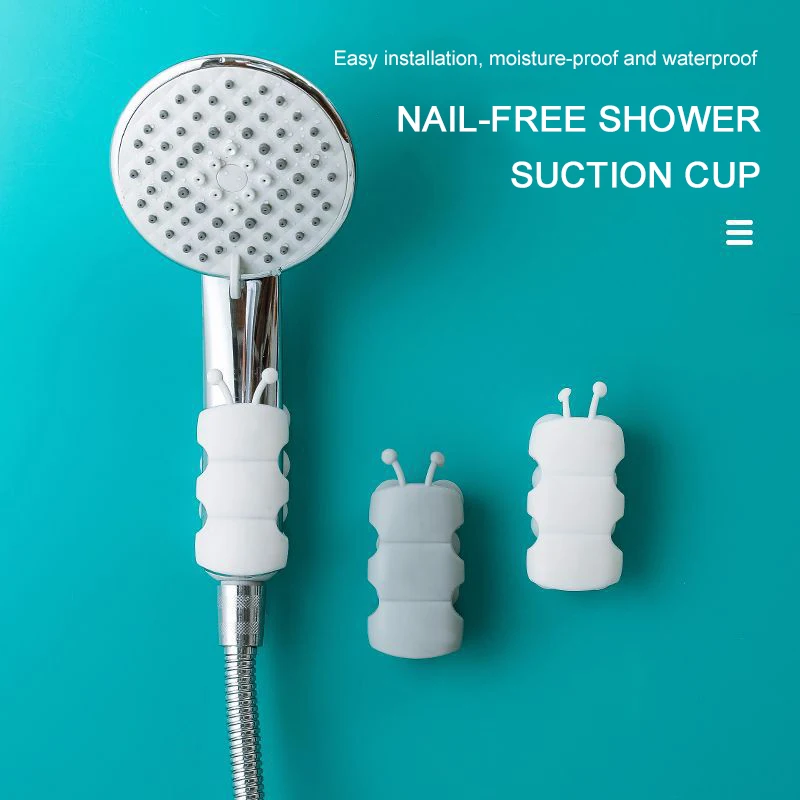 Silicone Shower Head Holder Suction Cup Shower Bracket Mount Bathroom Wall Rack Stand Reusable Bathroom Accessories 5PCS hooks
