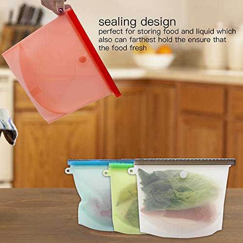 Silicone food Storage Bags,Sacchetti Alimenti Riutilizzabile Leak Resistant Seal conservazione degli alimenti contenitore per frutta verdura carne frigoriferi e utensili da cucina (set da 4)-1 litro
