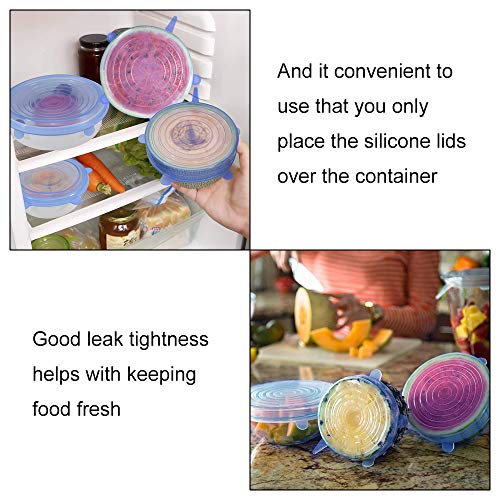 Silicone Stretch coperchi, Riutilizzabile Bowl Lids Food Saver Covers, 6 Pezzi di Diverse Dimensioni Coperchi per Alimenti per Ciotole, Piatti, Barattoli, Tazze (Blu)