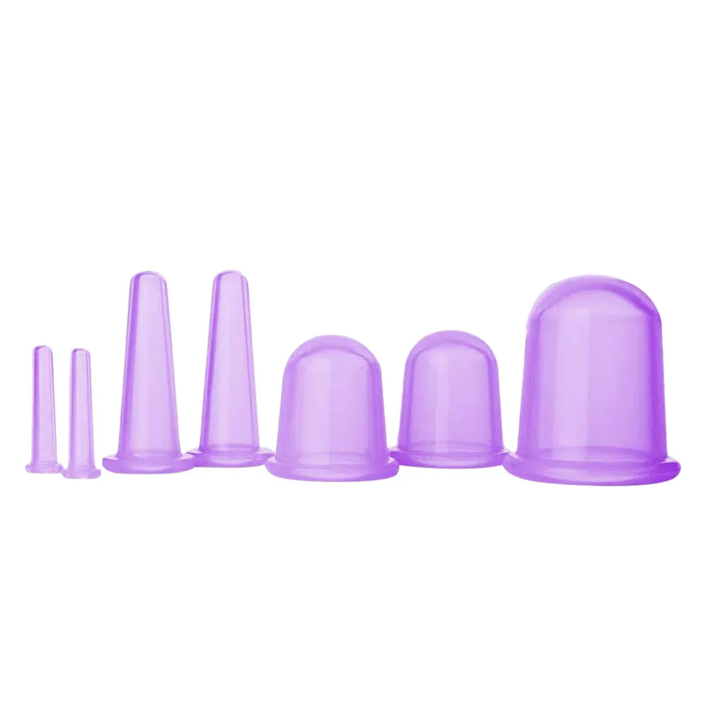 1 Set of 7pcs Silicone Vacuum Cupping Cups Back Body Massager Vacuum Cans for Men with Bag (Lavender)