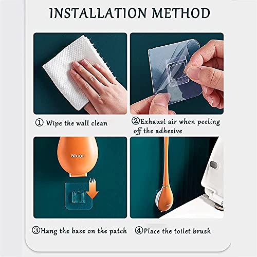 New Silicone Water Drop Toilet Brush and Holder Set, Automatic Opening and Closing, Creative Wall-Mounted Deep-Cleaning Silicone Toilet Bowl Brush for Bathroom, 2021 Hot (Green+Orange)