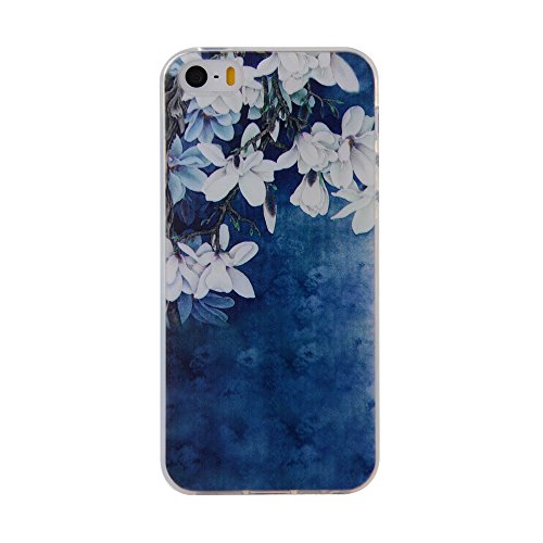 Silingsan Custodia in Silicone per iPhone 5/5S/SE Cover Gomma Gel TPU Soft Slim Case Cover Protettiva Custodia Leggero Sottile Cover Morbida Flessibile Cassa Antigraffio Antiurto - Fiori Bianchi
