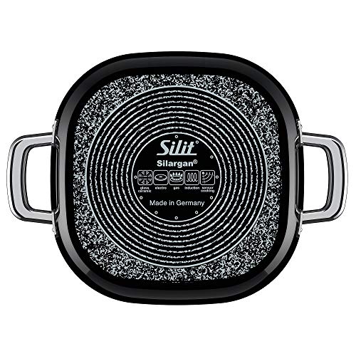 Silit Padella unbeschichtet Ø cm Nero Quadro Quadro Black Made in Germany beccuccio versatore in Vetro con Manico in Acciaio Inox Silargan Funzione Ceramica induzione Lavabile in lavastoviglie