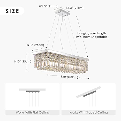 Siljoy, lampadario rettangolare in cristallo, lampadario moderno a sospensione, lunghezza 100 x larghezza 25 x altezza 25 cm