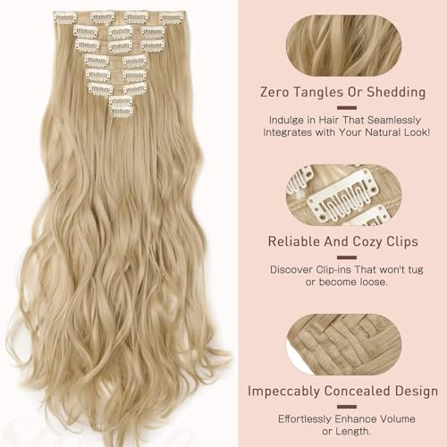 Silk-co 43cm-Extension Clip Capelli Colorati Mossi Extension Sintetiche Biondi 8 Fasce Full Head Extension Capelli Lunghi-Dorato Mix Biondo Sbiancante