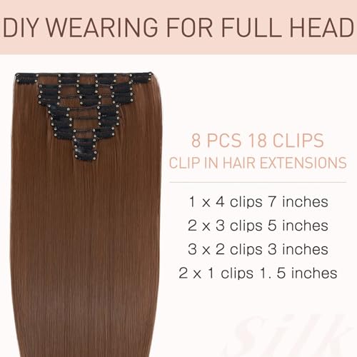 Silk-co 58cm-Extension Clip Capelli Colorati Lisci Extension Sintetiche 8 Fasce Full Head Extension Capelli Lunghi-Ramato Vivace