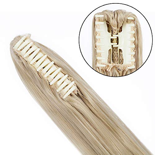 Silk-co 66cm-Coda Extension Capelli con Pinza Coda Finta Claw on Ponytail Extension Coda Capelli Lisci Clip-Biondo Mix Biondo Sbiancante